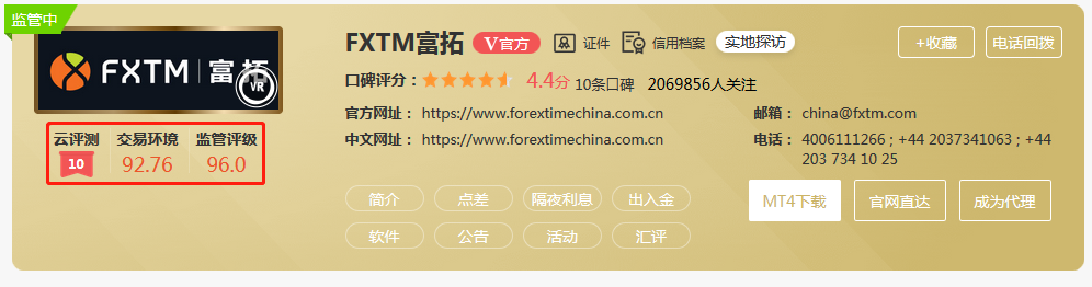 相信大家看了这个第三方权威评分,心里知道FXTM富拓到底靠不靠谱了吧,有这么多的监管,并且第三方评分系统不错,平台差不到那里去。