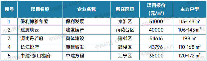 表:南京新房典型项目