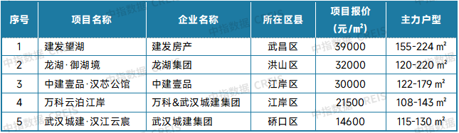 表:武汉新房典型项目