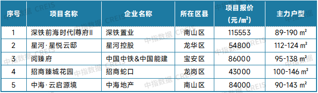 表:深圳新房典型项目