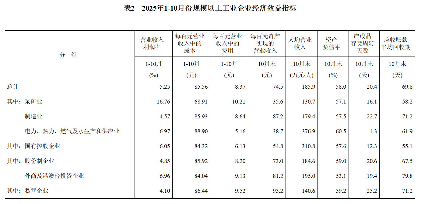 2025年1—10月份全国规模以上工业企业利润增长1.9%