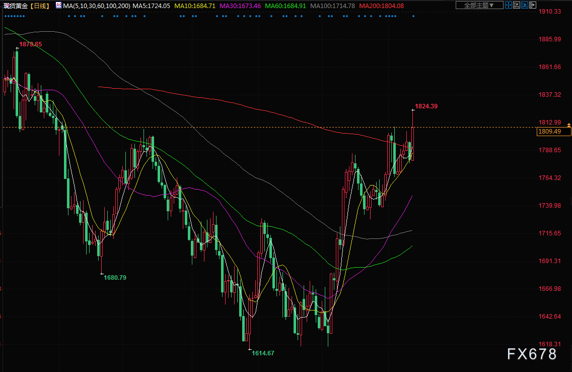 OANDA的高级分析师Edward Moya在一份报告中说:“如果美联储完全放弃其鹰派基调,黄金可能走上一条通往1861美元水平的道路。”