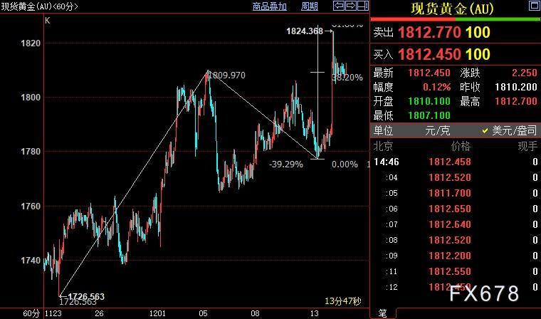 现货黄金上看1841美元